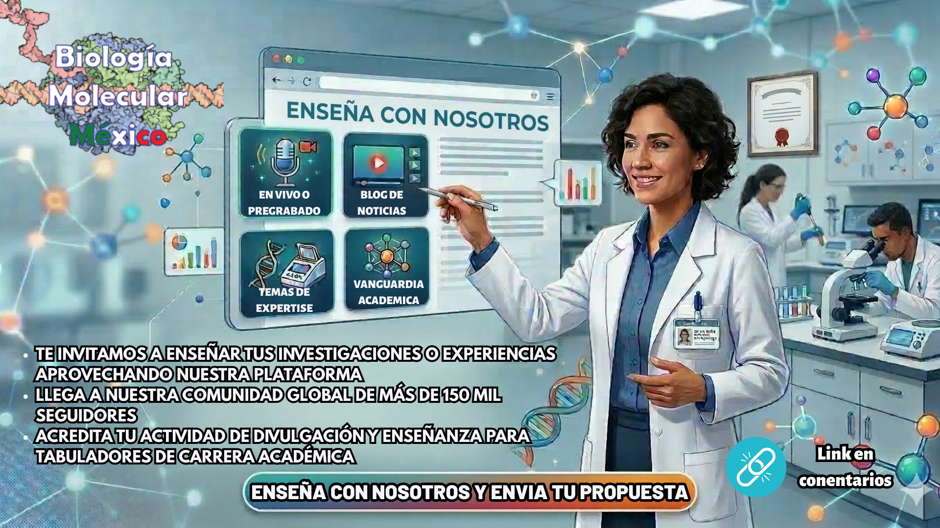 En Biología Molecular México, nuestra misión es democratizar el conocimiento especializado. Estamos invitando a investigadores, especialistas y estudiantes de posgrado a sumarse a nuestra red de instructores para compartir su experiencia técnica y sus líneas de investigación con la comunidad científica más grande de la región.